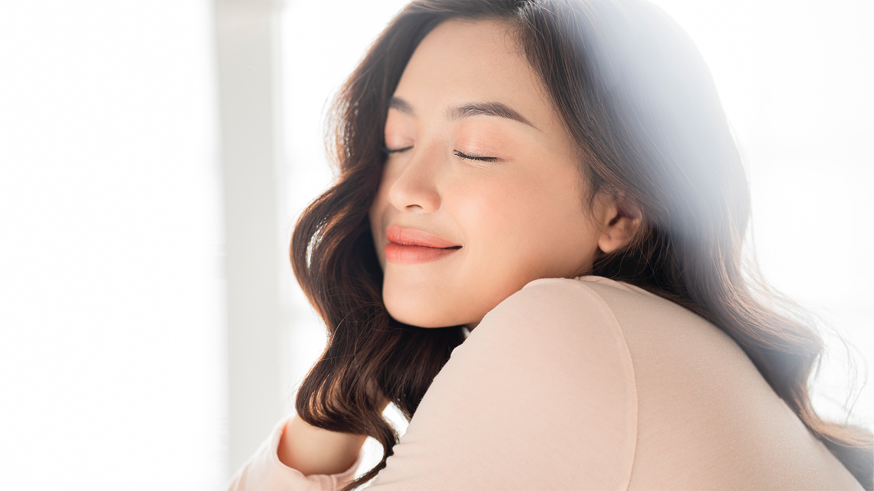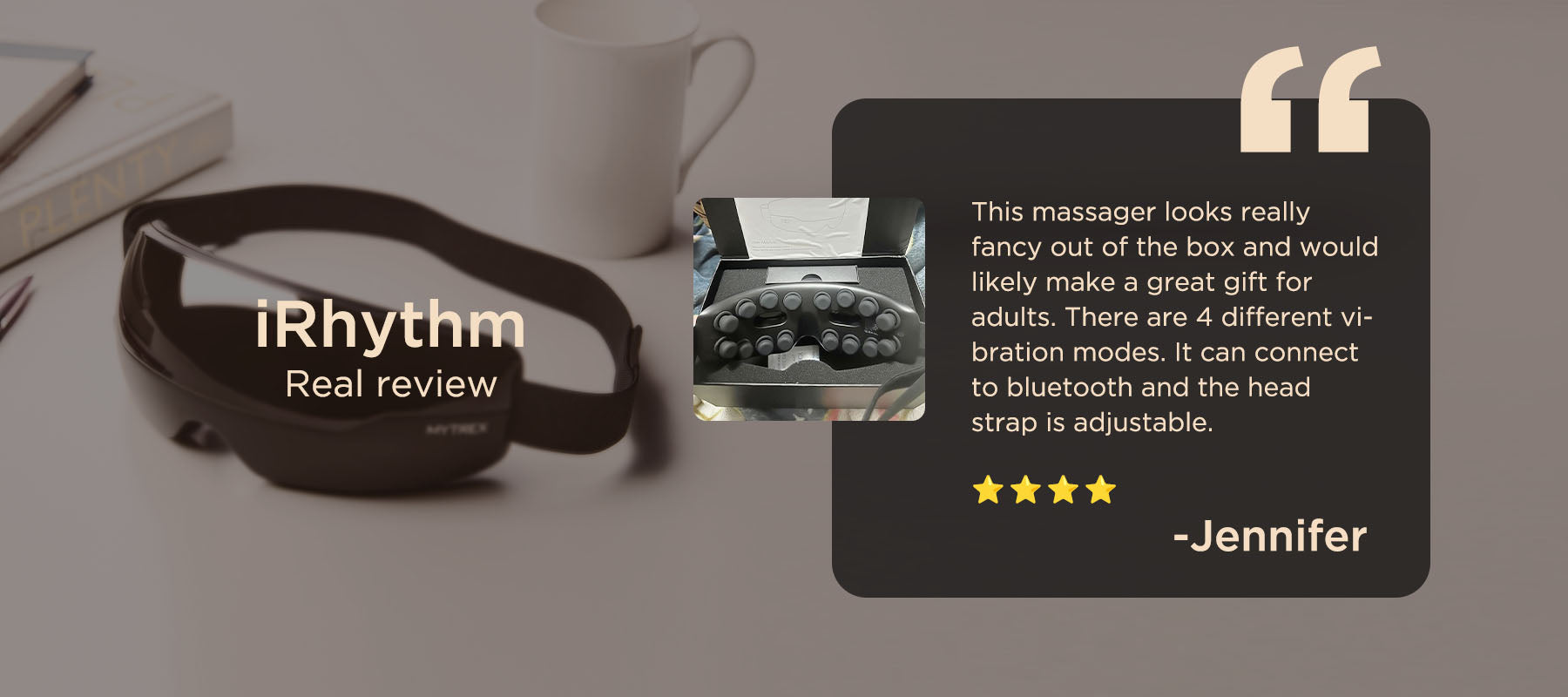 Using gentle rhythmic vibrations, iRhythm mimics the natural pressure of a human hand to ease tension around the eyes.