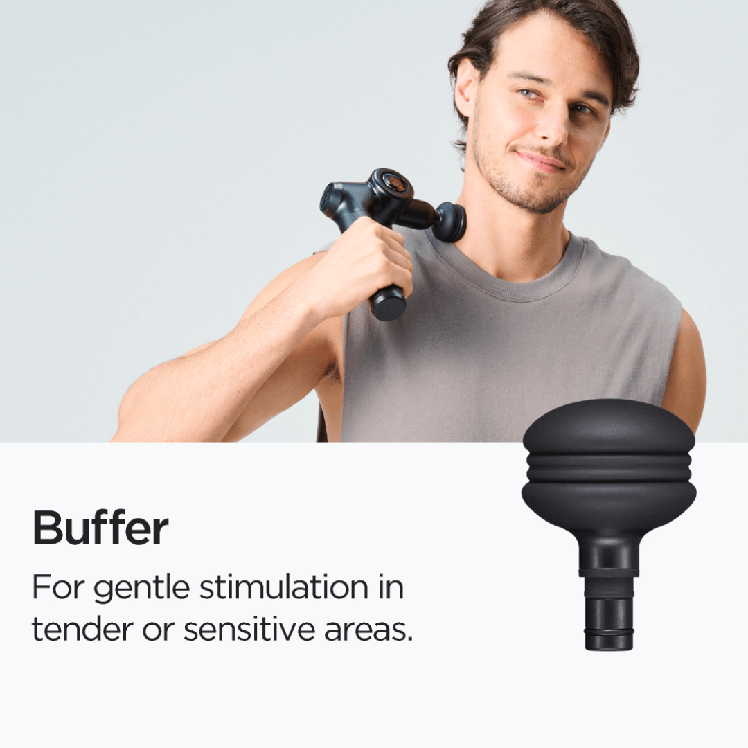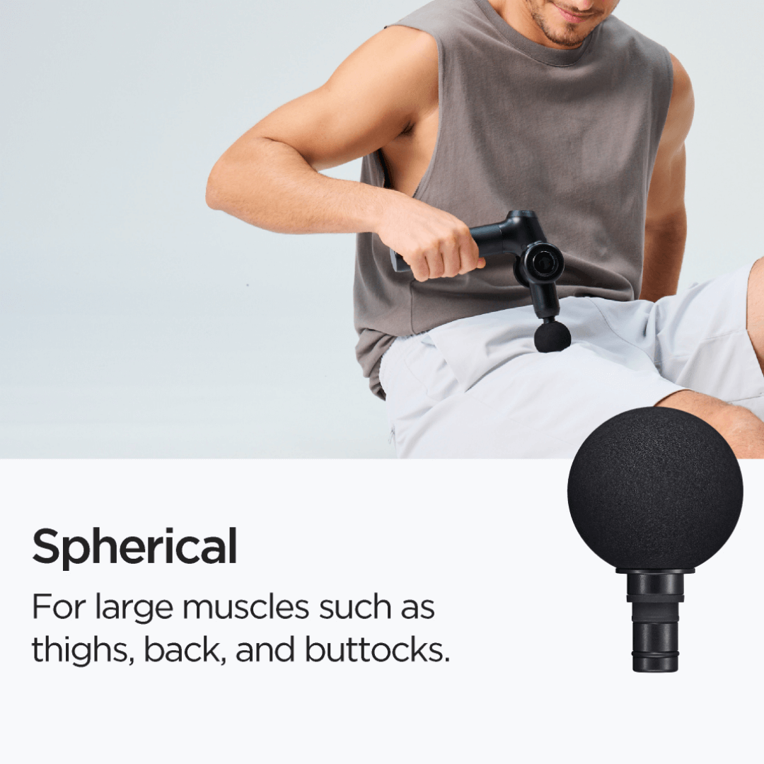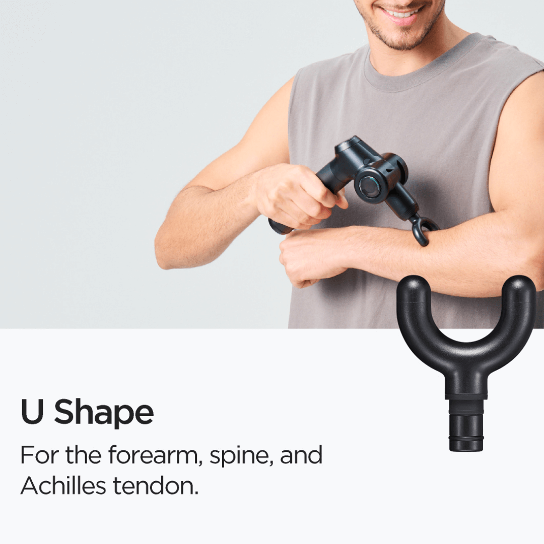 Experience customized muscle therapy with our 5-in-1 massage gun featuring buffer, spherical, flat, cylindrical, and U-shaped heads. Perfect for deep tissue, recovery & pain relief.