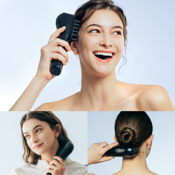For best results, we recommend firmly holding the brush against your scalp, face, neck, or shoulders, and gently pressing on these areas to relieve muscle tension.