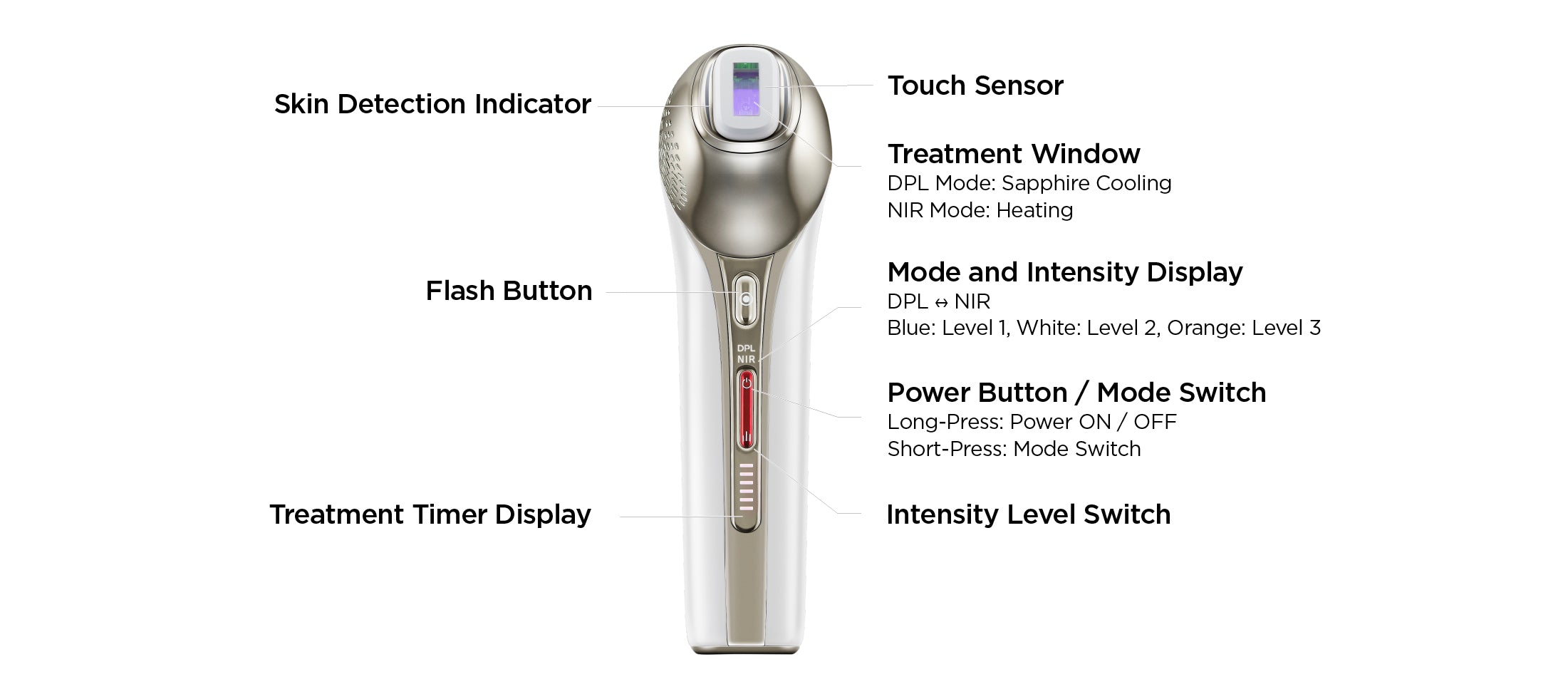 4.3°C 的 DPL 藍寶石冷卻可使您的皮膚舒適地變亮和舒緩,而 40°C 的 NIR 皮膚緊緻功能可透過促進膠原蛋白的產生來增強膚色和緊緻度。